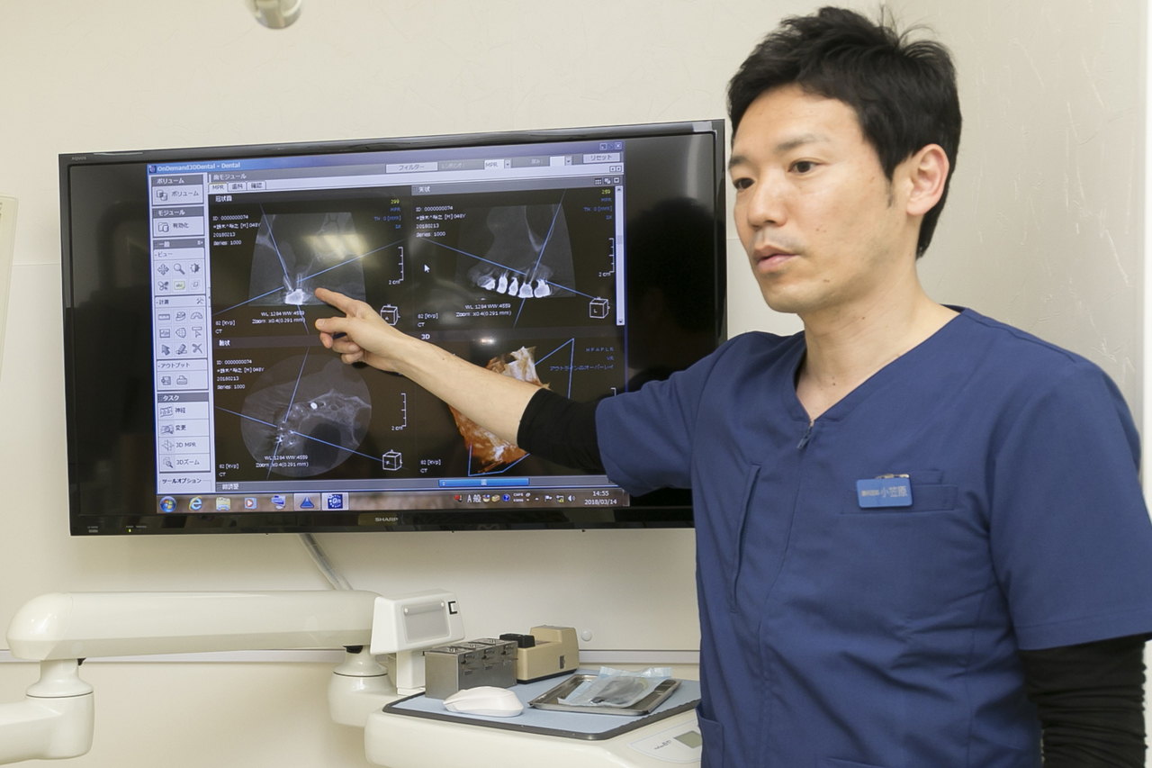 当院では肉眼の5~20倍に拡大して患部を確認できるマイクロスコープを導入。繊細で精密な根管治療を行っています。